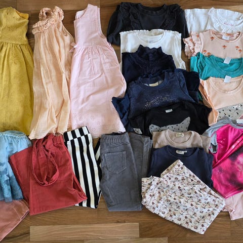 Stor klespakke til jente str 110-116 med fine klær fra Lindex, Name It, Newbie, Wheat, Pomp de lux, Hummel, Polarn O.Pyret, H&M,The New, Zara. De meste er veldig pent brukte,noen lite brukte. Kan hentes eller sendes med 129 kr frakt I tillegg .
