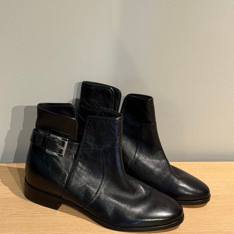 Ankelstøvletter i brun skinnimitasjon eller skinn, med glidelås på siden for enkel av- og påtaking. Modellen har lav hæl og glatt såle. Nøytral farge og enkel design som passer til hverdagsbruk og til ulike antrekk for dame. Prisen er 2199 . Selges for 1000