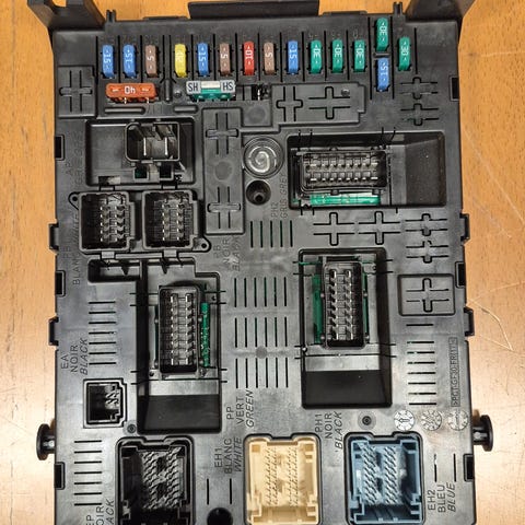 Peugeot styreenhet og sikringsboks for bilens elektriske system. Enheten har flere sikringer og tilkoblingspunkter for ulike elektriske komponenter i bilen. Passer til Peugeot 508 SW avhengig av delenummer og spesifikasjoner. Kontroller delenummer på etiketten og sammenlign med eksisterende enhet i bilen for å sikre kompatibilitet før montering.