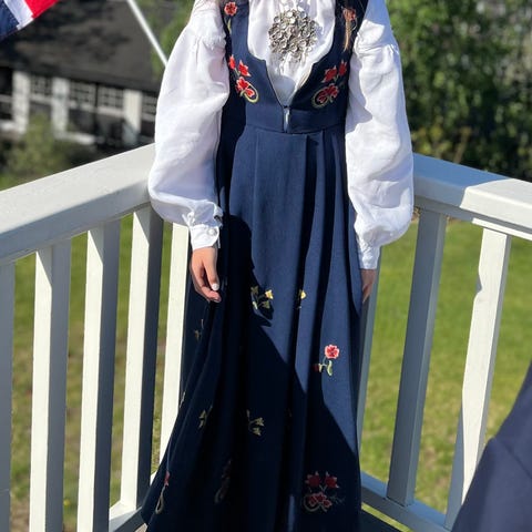 Flott bunad/ helgedagsdrakt. Med to skjorter , forkle, cape og to søljer