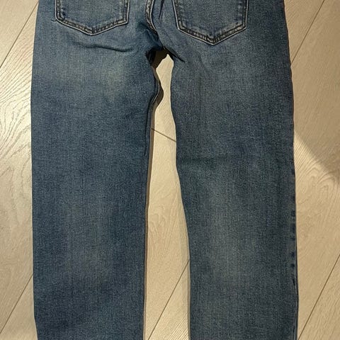 Jeans lys bukse for gutt i størrelse 146. Buksen er i lys jeans blå, og har klassisk 5-lommers design med knapp og glidelås i front. Passer til hverdagsbruk og kan kombineres med ulike overdeler for både skole og fritid. Har en liten flekk foran, se bilde.