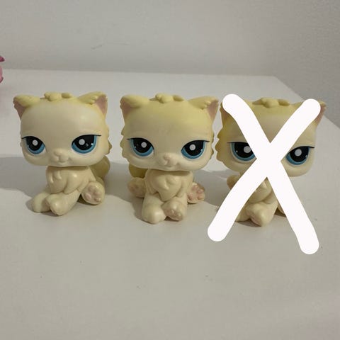 Jeg er ikke vintage toys expert men google lenses sier dette er en LPS fra hasbro. Den har noen små hairlines og ettpar tusj merker men har ellers ingen skader. For dere som samler på bratz,monster high,my little pony,littlest pet shop,barbie og lign kan kanskje dette være noe. Den bør sikkert ikke kastes da dette delvis er gått ut av produksjon og utifrahva jeg forstår samler folk på leker fra hasbro,mattel,kenner,takara,lego og andre merker.