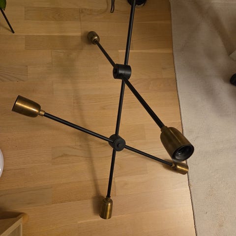 Vakker svart lampe med 6 pærer. I veldig god stand. Dimbar. Selges uten pærer.