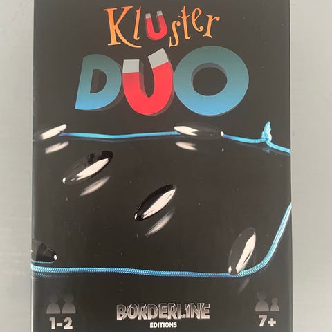 Kluster Duo brettspill for 1–2 spillere. Spillet består av magnetiske steiner og en snor som markerer spilleområdet. Anbefalt alder fra 7 år. Spillet egner seg for to spillere, men kan også spilles alene som ferdighetsspill. Inneholder eske, spilleregler, snor og magnetsteiner.