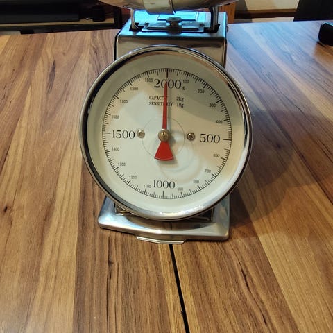 Retro kjøkkenvekt i sølvfarge