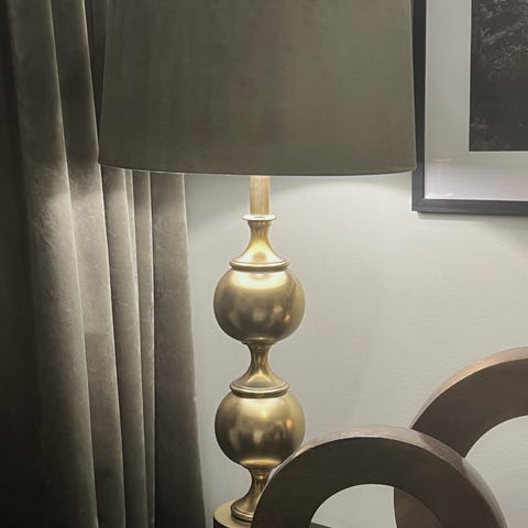 PR Home Sara lampeskjerm i metall med diameter på 30 cm. Utsiden er svart og innsiden er gullfarget, noe som gir et varmt lys når skjermen er i bruk. Skjermen er rund og passer til standard lampefester som vist på bildet. Egnet til bruk på bordlampe eller gulvlampe der en middels stor skjerm ønskes. Ikke brukt , bare prøvd men den passet ikke inn der jeg ønsket! Kan levere mellom Å-Orkanger