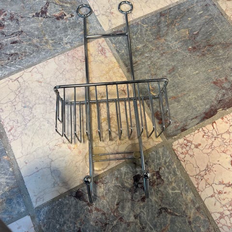 Baby badestol i grå plast med hvit antiskli-pute. Stolen har flere sugekopper under for å festes i badekar eller balje for økt stabilitet. Utformet for å støtte babyen i liggende/tilbakelent posisjon under bading. Egnet til bruk i vanlig badekar eller babybadekar. Usikker på merke, brukt og trenger en vask, hel og fin