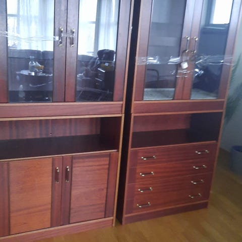 Vitrineskap med lys. Høyde 200 cm, bredde 160
