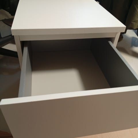 Brukt som tv bord på barnerom. Kasse til oppbevaring med hjul, hvit 62x62x35 cm