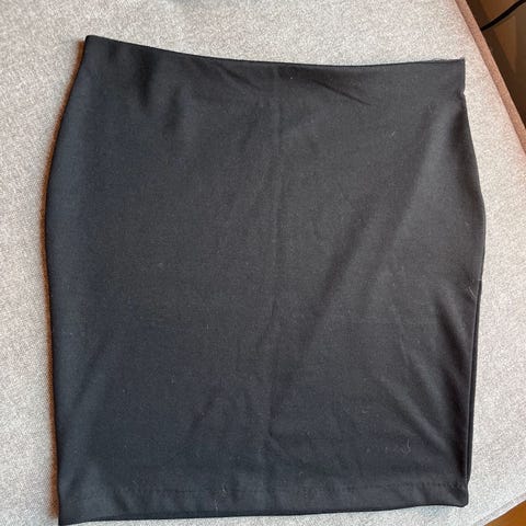 Lindex skjørt for dame i størrelse M. Skjørtet er svart og laget av polyester. Det har plissért stoff og elastisk linning i livet. Passer til hverdagsbruk eller mer formelle anledninger, avhengig av hva det kombineres med.