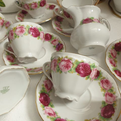 6 kaffekopper der skålene har blomstermotiv = 250,- pr. sett