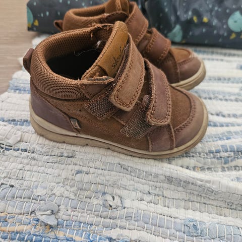 H&M barnesko i størrelse 26 for unisex. Skoene er i brun farge med kontrastdetaljer. De har borrelås for enkel av- og påkledning og myk, fôret innside som gir ekstra komfort. Yttersålen er grovmønstret for bedre grep. Passer til hverdagsbruk i kjøligere vær.