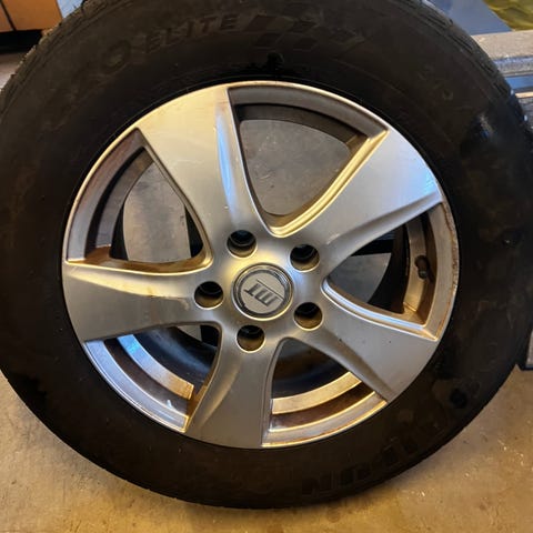 Felgene er pene, og dekkene har god mønsterdybde (5–6 mm) – klare til bruk lenge enda.