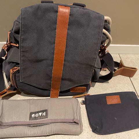 KAOS stelleveske i ryggsekkmodell i grønn tekstil. Vesken har snørelukking under topplokket, flere utvendige lommer med glidelås og justerbare skulderstropper. Innvendig er det flere rom for organisering av utstyr. Det følger med en sammenleggbar stellematte i lys tekstil. Egner seg til oppbevaring og transport av baby- og småbarnsutstyr på tur og i hverdagen.