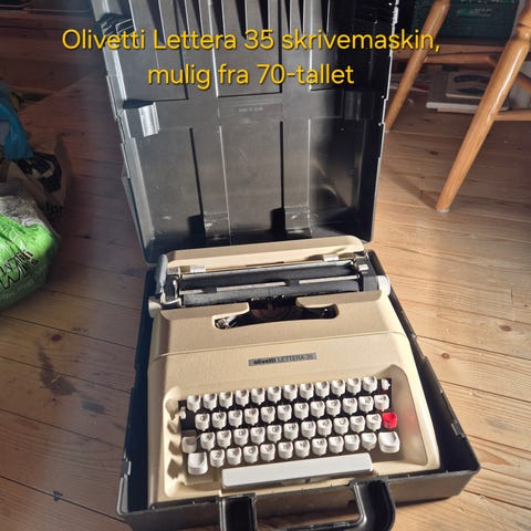 Olivetti Littera 32 skrivemaskin med veske til salgs. Pent brukt - I god stand. Fungerer fint og like fin.