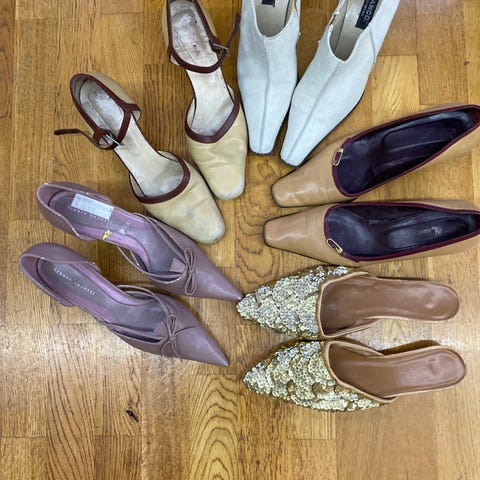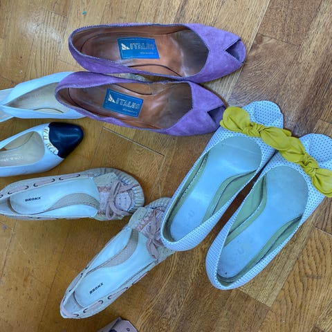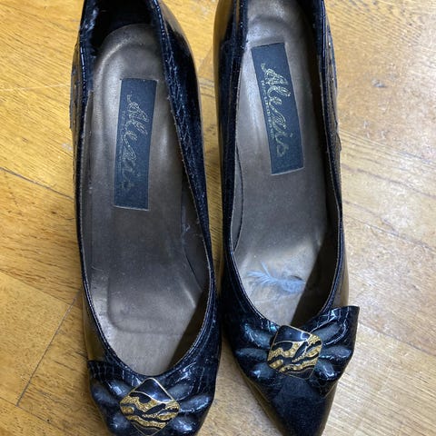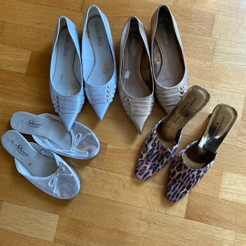 Selger 3 par sko i gull farge. Ene paret er type innesko , de to andre er mere finsko med hæl. Et av parene ikke brukt. Str er 39/40. Kan sende