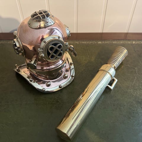 Fransk hjelmdykker kniv.fra tidlig 1920-tidlig 30.tung sak med messing håndtak å messing balg ,