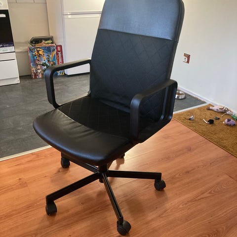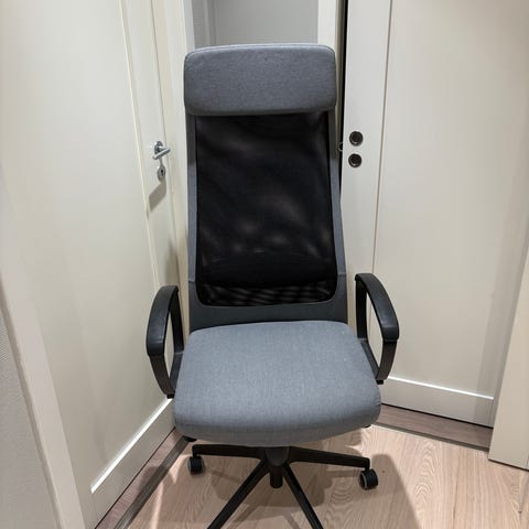 HÅG kontorstol med mange innstillingsmuligheter. Man kan justere høyde på sete, armlener og rygg. Man kan justere vipp og skyve setet frem og tilbake.