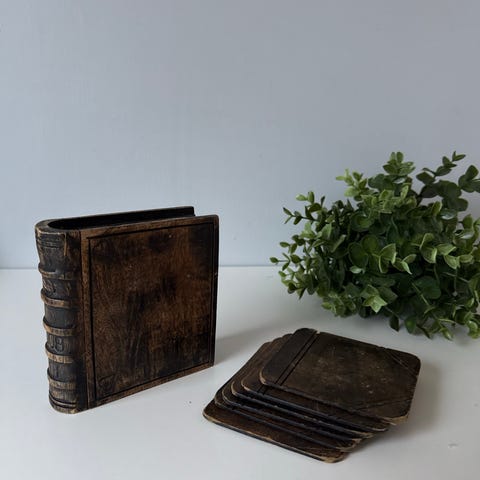 Vintage gryteunderlag i treverk. Rund form med utskåret dekorativt mønster og små føtter under for stabilitet og lufting mot underlaget. Omkrets: 15,5 cm. Søkeord: vintage, retro, design, dekor , håndarbeid, kjeleunderlag, gryteunderlag, kjøkken
