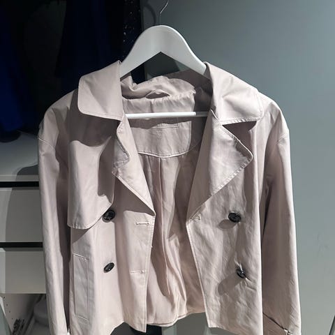 Va Vite jakke for dame i størrelse 36. Jakken er blå og laget i polyester. Modellen har krage, knappelukking foran og mansjetter på ermene. Lengden er kortere, med klassisk snitt som passer til hverdagsbruk og lett ytterplagg i overgangssesonger.