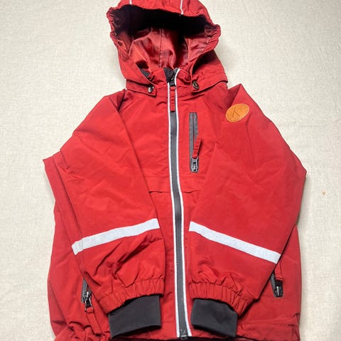 Skalljakke fra Kuling str. 98 (stor i størrelsen). Hanken har røket (se bilde) og det er et lite hull i jakka (se bilde).