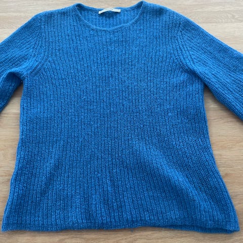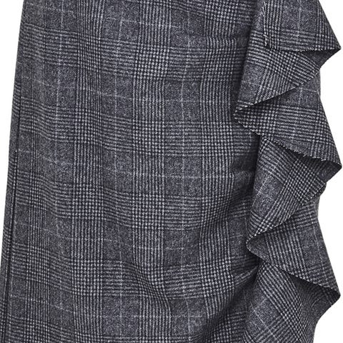 Line of Oslo skjørt i ullstretc for dame i størrelse M. Skjørtet er blått og har utsvingt fasong. Materialet er ull, som gir et mykt og strukturert uttrykk. Passer til hverdagsbruk eller mer pyntede anledninger, og kan kombineres med ulike topper og strømpebukser etter sesong.