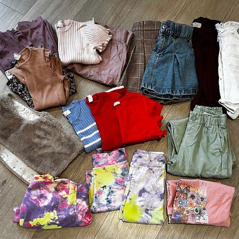 Klespakke str 122/128 (mest 128) selges samlet. Fra Lindex.