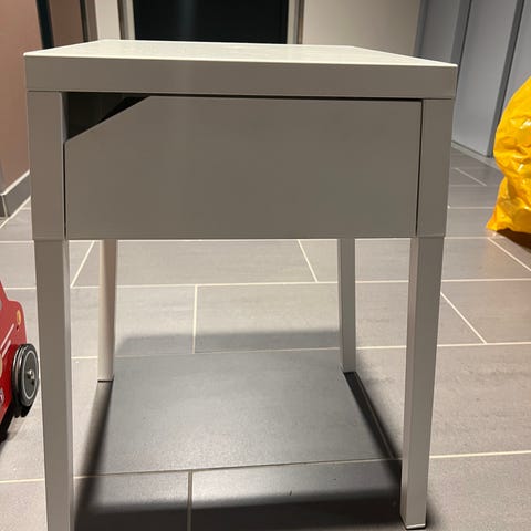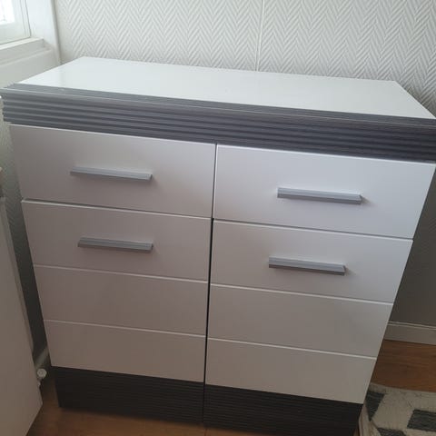IKEA skap med åpen hylle og skuffer grå og hvit