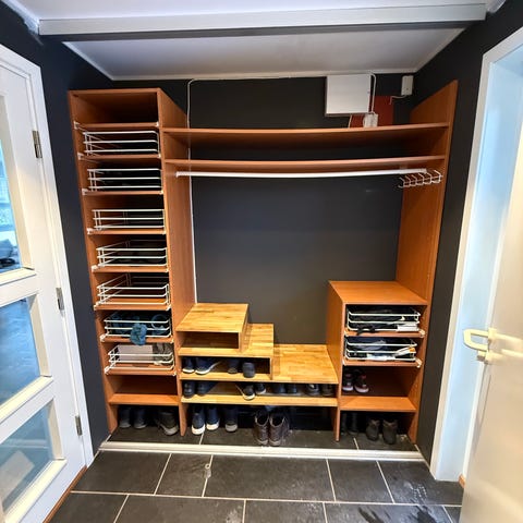 2 skap a 50 cm spm passer i en smal gang eller lignende. Settes sammen til bredde på 100 cm.