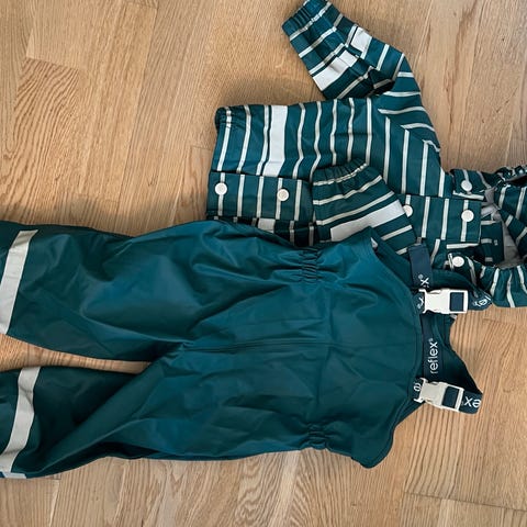 Brukt regntøy. Ene strikken må snart byttes