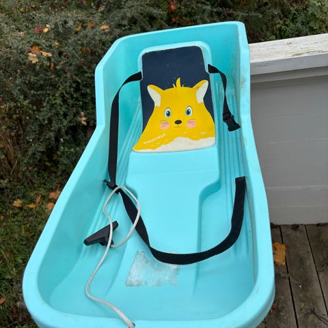 Stiga Twister akebrett i blå plast. Rund modell med to integrerte håndtak. Egnet for barn fra 3 år og oppover, i henhold til merkingen på produktet. Beregnet til bruk på snøunderlag til aking og vinterlek.