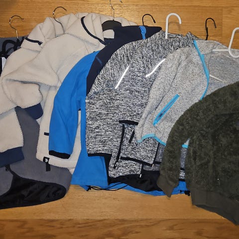 4 fleecebukser og 5 fleecejakker/overdeler selges samlet for kr 250.