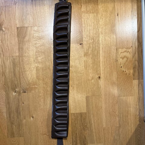 Patronbelte med plass til flere patroner. Beltet har justerbar lengde med spenne i metall. Egnet til oppbevaring og bæring av ammunisjon rundt livet under jakt.