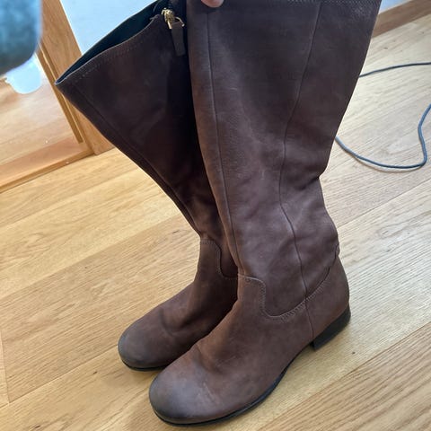 Pent brukte skinnstøvletter i brunt skinn fra Clou i str 38. De er ikke foret