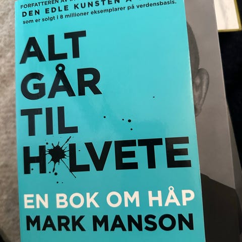 Alt går til helvete, bok av Mark Manson. Norsk utgave utgitt på Gyldendal. Pocketbok med turkis forside. Undertittel: En bok om håp. Sakprosa/selvhjelpslitteratur som tar for seg temaer som håp, mening og moderne livsutfordringer.