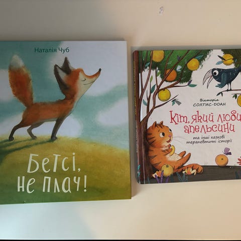 "Історії про тварин" barnebok på ukrainsk. Boken inneholder fortellinger om dyr i skogen, ved havet, i jungelen og på markene. Illustrert med fargebilder på hver side.