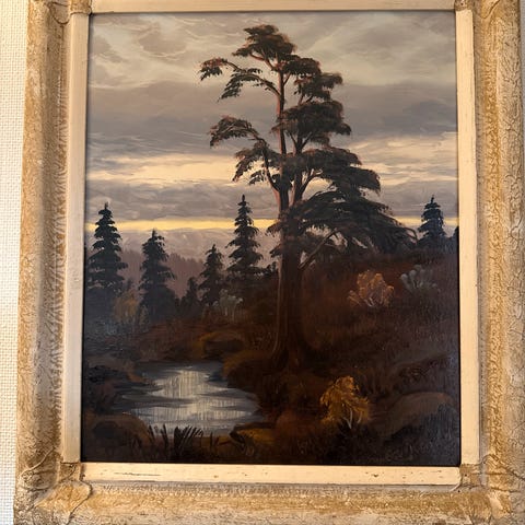 Selger to stemningsfulle oljemalerier (repro/stuebilder) av kunstneren E. Viken.