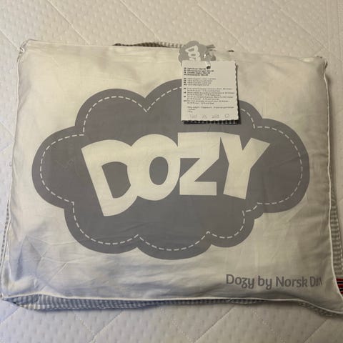 Dundyne i str. 100x 140, og juniorpute i str. 40x 60 i dun (begge heter Alvøy fra Kid). Begge er kjøpt nye av oss på Kid, puta er kanskje brukt to ganger.