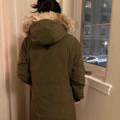 Pent brukt Canada Goose dunjakke for dame i størrelse L. Liten i størrelsen.