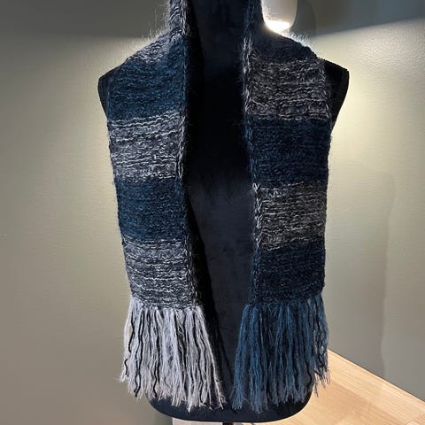 Mexx skjerf 200x20cm. Skjerfet har et flerfarget mønster i nøytrale toner og frynser i endene. Strukturen er grovstrikket, noe som gir et varmt og mykt uttrykk.