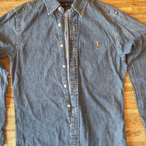 Ralph Lauren, vintage denimskjorte fra 90-tallet. Kjøpt brukt på eBay i USA, sjelden å få tak i disse i Norge. Betalte selv 1100,- inkl frakt og toll.