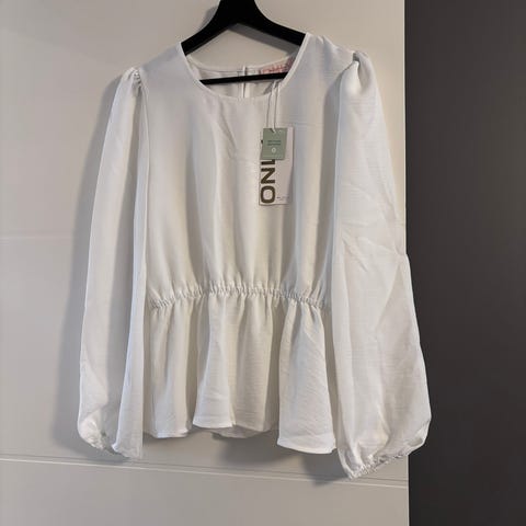 Blusen er kun brukt noen få timer. Det er snitt/legg ved brystet.