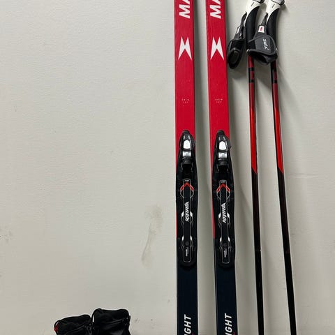 Madshus felleski 137cm lange. Skisko fra Alpina i str 33. Skoesken medfølger. Staver (tror de er 110cm) fra Swix med ekstra godt grep. Selger pakken samlet til den første som kommer og henter. Har to identiske pakker.