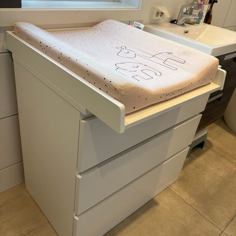 Troll bedside crib. Sengen har åpen langside som kan plasseres inntil foreldreseng for nærhet til barnet. Sengen står på hjul for enkel forflytning. Egnet som første seng til spedbarn ved siden av voksenseng eller som liten frittstående sprinkelseng etter behov. Noe slitasje må påregnes.