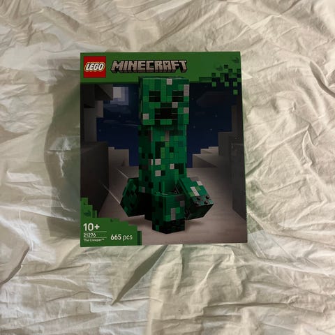 LEGO Minecraft The Creeper byggesett med 665 deler. Settet lar deg bygge en stor, justerbar Creeper-figur inspirert av Minecraft-universet. Esken viser også en grisfigur og TNT-element. Anbefalt alder er 10+ år. Passer for bygging, utstilling og lek for de som liker Minecraft og LEGO.