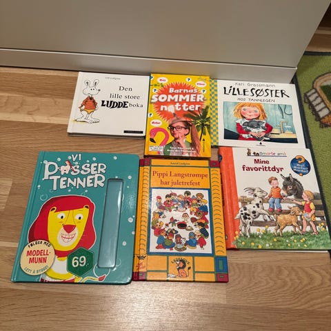 Pakke med flere bildebøker for småbarn. Inneholder ulike titler med fargerike illustrasjoner og enkle tekster tilpasset de minste barna. Bøkene passer godt til høytlesning, språkutvikling og tidlig lesetrening. Egner seg for barn i barnehagealder og tidlig skolealder.