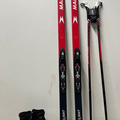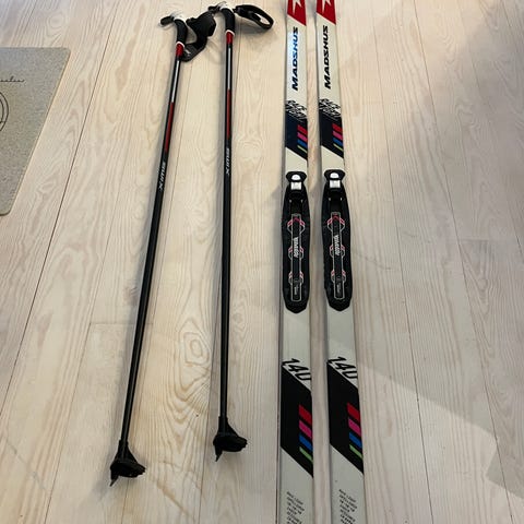 Madshus felleski 137cm lange. Skisko fra Alpina i str 33. Skoesken medfølger. Staver (tror de er 110cm) fra Swix med ekstra godt grep. Selger pakken samlet til den første som kommer og henter. Har to identiske pakker.