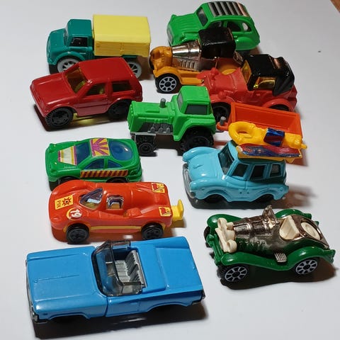 Hot Wheels lekebiler sett i flere farger. Bildene viser blant annet personbiler og varebil/minibuss i ulike karosseriformer. Egnet som lekebiler for barn eller som samleobjekter for samlere av modellbiler i liten skala.