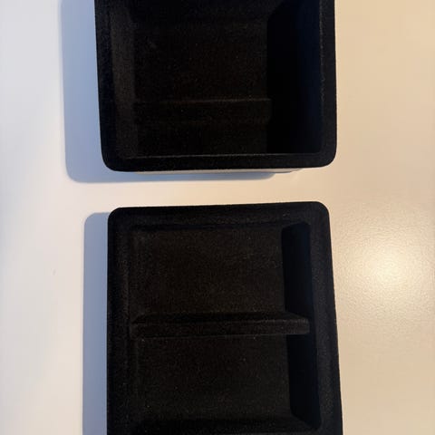 Tesla Model 3/Y midtkonsollbrett i svart. Settet består av brett til midtkonsollen, utformet for å passe i Tesla Model 3 og Model Y. Brettene gir inndelte rom for oppbevaring av mindre gjenstander i midtkonsollen. Overflaten er trukket i mykt materiale som beskytter innholdet og demper støy. Produktet er laget for å ligge nedi den originale midtkonsollen i bilen.