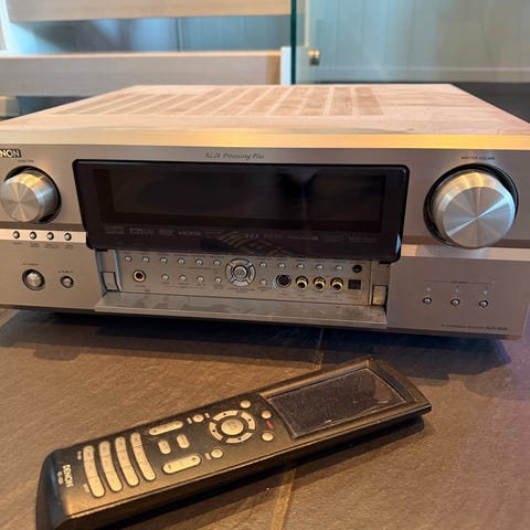 Marantz SR5004 hjemmekinoforsterker i sølvfarget utførelse.